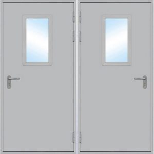 Противопожарные полуторапольные двери со стеклом предназначены для установки в дверные проемы нестандартных размеров. При этом одна створка продолжает работать, а при необходимости открывают вторую, тем самым увеличивая проход. Уровни огнестойкости варьируются от EI 30 до EI 60.
