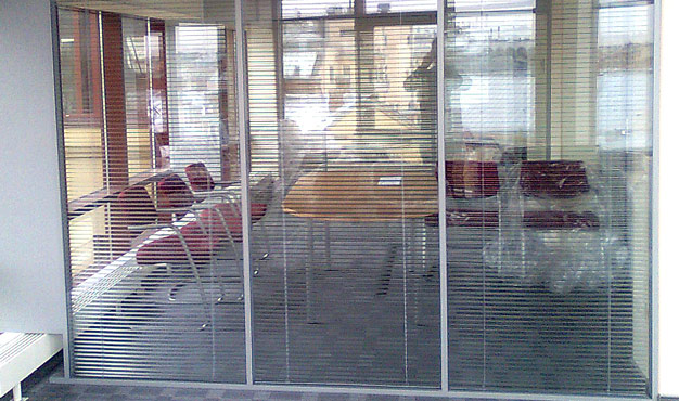 Противопожарные перегородки с двойным остеклением могут изготавливаться как в полностью остекленном варианте, так и в частично остекленном исполнении. Основное предназначение таких конструкций — это разделение общего помещения на несколько отдельных рабочих зон. При этом преследуется несколько целей:
