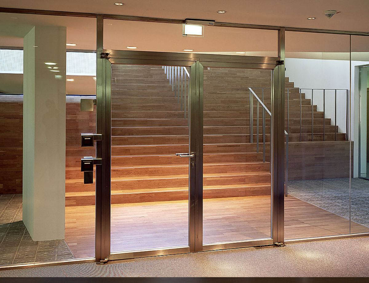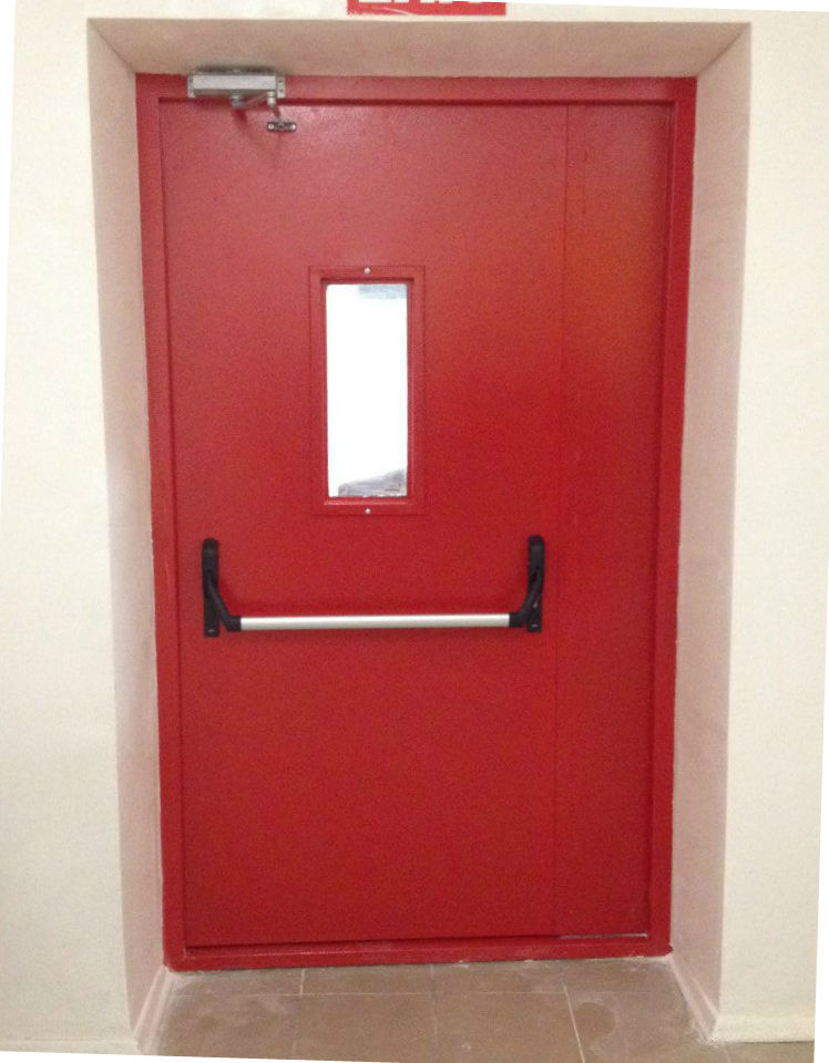 От качества заполнителя зависит, насколько эффективно преграда будет препятствовать распространению высоких температур. Материал должен быть негорючим и стойким к температурным воздействиям. В комплектацию противопожарной алюминиевой двери также входят уплотнители, ручки, замки и иные элементы фурнитуры. Дополнительные фурнитурные детали: доводчики, отбойные пластины, пороги разных типов.